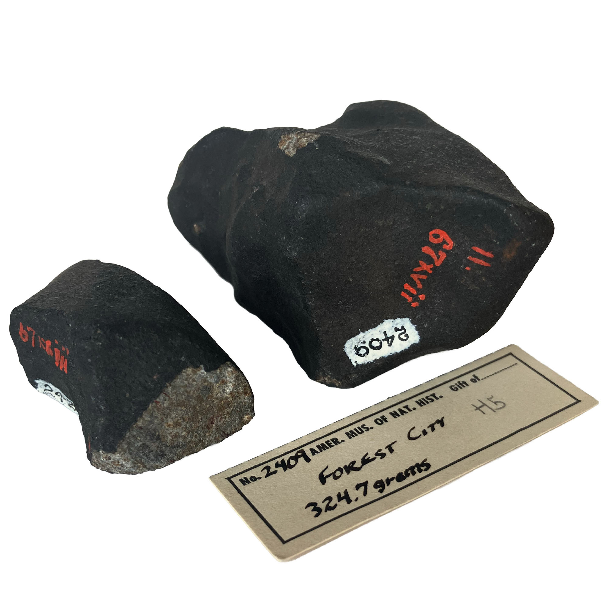 Four Foote/AMNH Holbrook peas part of the celebrated 2007 Bonhams auction, the first auction ever by a major international auction house to be solely dedicated to meteorites (see subsuite iii below; Bonhams, 2007:lot 9). The auction included the sale of the Claxton impacted mailbox, the crown section of the Willamette meteorite, as well as the oriented Holbrook stone of 604 grams pictured in Foote (1912a:figs. 11–12).