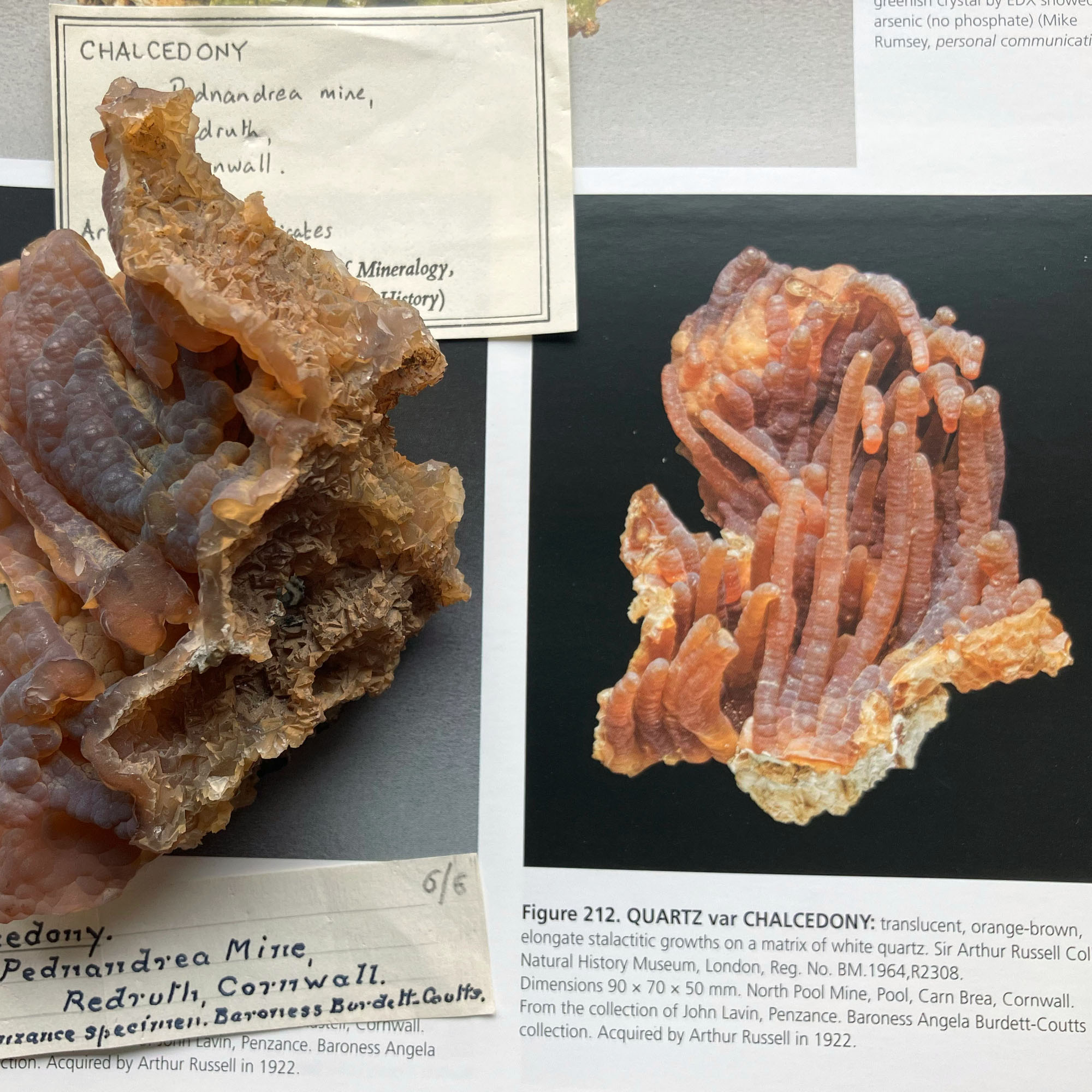 locality which was closed in 1891. With Sir Russell's typical handwritten label: "Chalcedony. Pednandrea mine, Redruth,